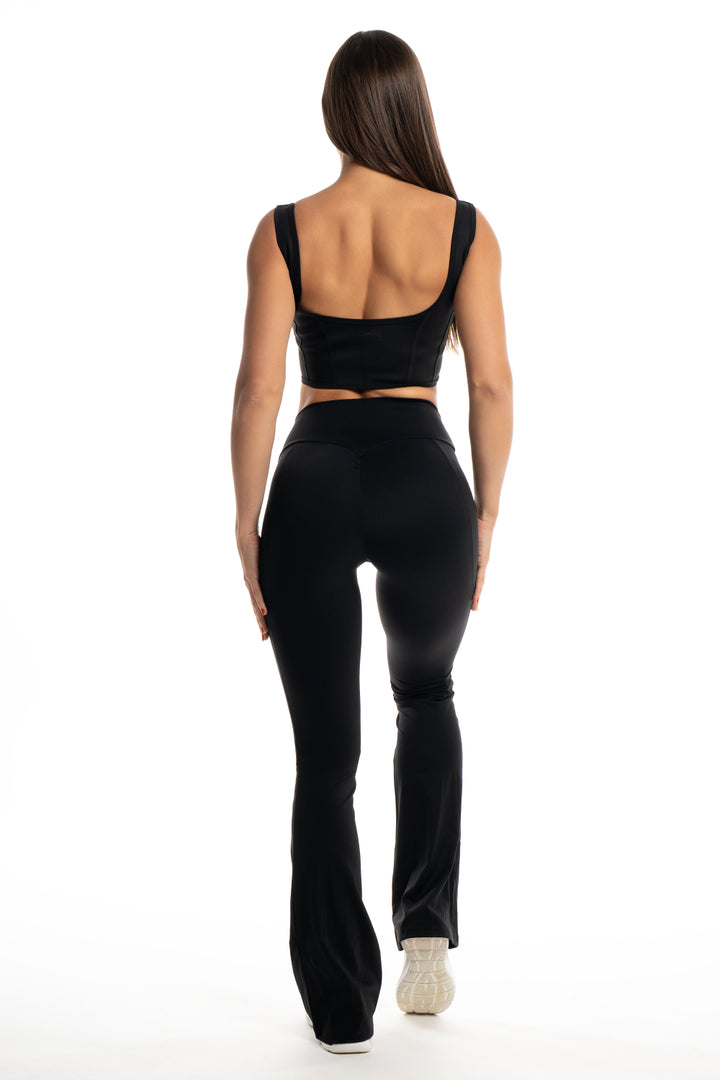 Seznamte se s absolutní novinkou v naší nabídce! Legíny Flare s rozšířenou nohavicí z kolekce Essential se stanou při každém oblečení vaší druhou kůží! Jsou navržené tak, aby vám umožnily přejít od cvičení rovnou k další položce ve vašem denním programu. Na zadečku mají jemné řasení, které jej opticky vytvaruje a zakulatí. Tento minimalistický, funkční módní kousek vám v šatníku rozhodně nemůže chybět, hodí se k různým outfitům, od sportovních až po ty elegantnější!